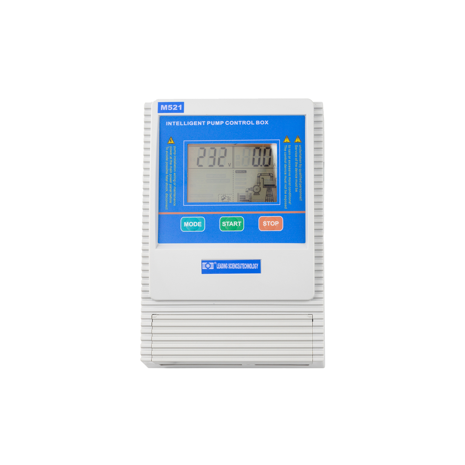 M521 is a single phase pump control panel for protecting and control single phase pump with power range from 0.37-2.2kw. It can be used for borehole pump, booster pump, submersible pump, surface pump, sewage pump,etc.